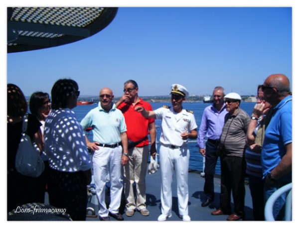 Domenica 17 giugno 2012, nell’ambito delle celebrazioni del 50° Anniversario della costituzione del Club di Augusta,in occasione della visita del Lions Club di Ragusa Host nella nostra città, con l’intento di: rafforzare i vincoli di amicizia e socievolezza tra i Soci dei due Club; far conoscere loro, i profondi legami esistenti tra la Marina Militare e la città di Augusta, ed i luoghi dove operano professionisti dediti al servizio della pace e della collettività; un numeroso gruppo di soci di Soci dei due Club Gemellati, con amici e familiari, si sono recati presso la banchina Tullio Marcon, per visitare la Nave della Marina Militare “SIRIO”, dove sono stati accolti e guidati nella visita, con signorile cortesia, dal Comandante della Nave” Capitano di fregata Francesco LOIERO”. Subito dopo la visita della Nave il gruppo si è spostato presso la vecchia darsena, dove si è imbarcato su mezzo, gentilmente messo a disposizione per l’occasione, dai Barcaioli di Augusta, dove ha effettuato un giro nella Rada, da dove è stato possibile ammirare dal mare i forti Garcia e Vittoria e Torre Avalos. Al rientro, il gruppo si è trasferimento a Palazzo Zuppello